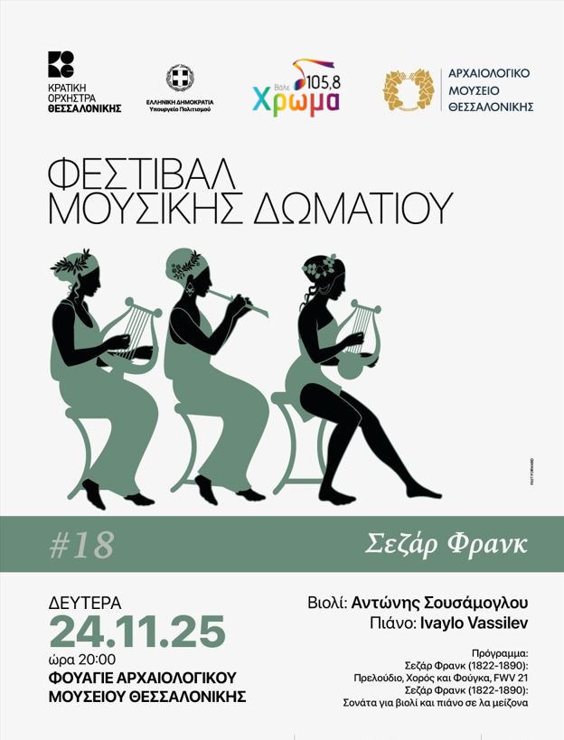 Από σήμερα Σάββατο 22 έως και αύριο Κυριακή 23 Νοεμβρίου, θα έχετε την ευκαιρία να κερδίσετε πέντε διπλές προσκλήσεις για την συναυλία Σεζάρ Φρανκ, που θα πραγματοποιηθεί την Δευτέρα 24 Νοεμβρίου στις οκτώ το βράδυ, στο Φουαγέ του Αρχαιολογικού Μουσείου Θεσσαλονίκης στα πλαίσια του Φεστιβάλ Μουσικής Δωματίου. Χορηγός Επικοινωνίας είναι ο Χρώμα 105.8 Δηλώστε συμμετοχή, στέλνοντας μας μήνυμα μέσω της ιστοσελίδας μας www.chromafm.gr, του Instagram & του Facebook.