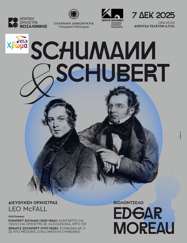 Από σήμερα Πέμπτη 4 έως και αύριο Παρασκευή 5 Δεκεμβρίου, θα έχετε την ευκαιρία να κερδίσετε πέντε διπλές προσκλήσεις για την συναυλία SCHUMANN & SCHUBERT η οποία θα πραγματοποιηθεί αυτή την Κυριακή 7 Δεκεμβρίου στις οκτώ το βράδυ, στην Αίθουσα Τελετών του Α.Π.Θ Χορηγός Επικοινωνίας είναι ο Χρώμα 105.8 Δηλώστε συμμετοχή, στέλνοντας μας μήνυμα μέσω της ιστοσελίδας μας www.hroma.gr, του Instagram & του Facebook.
